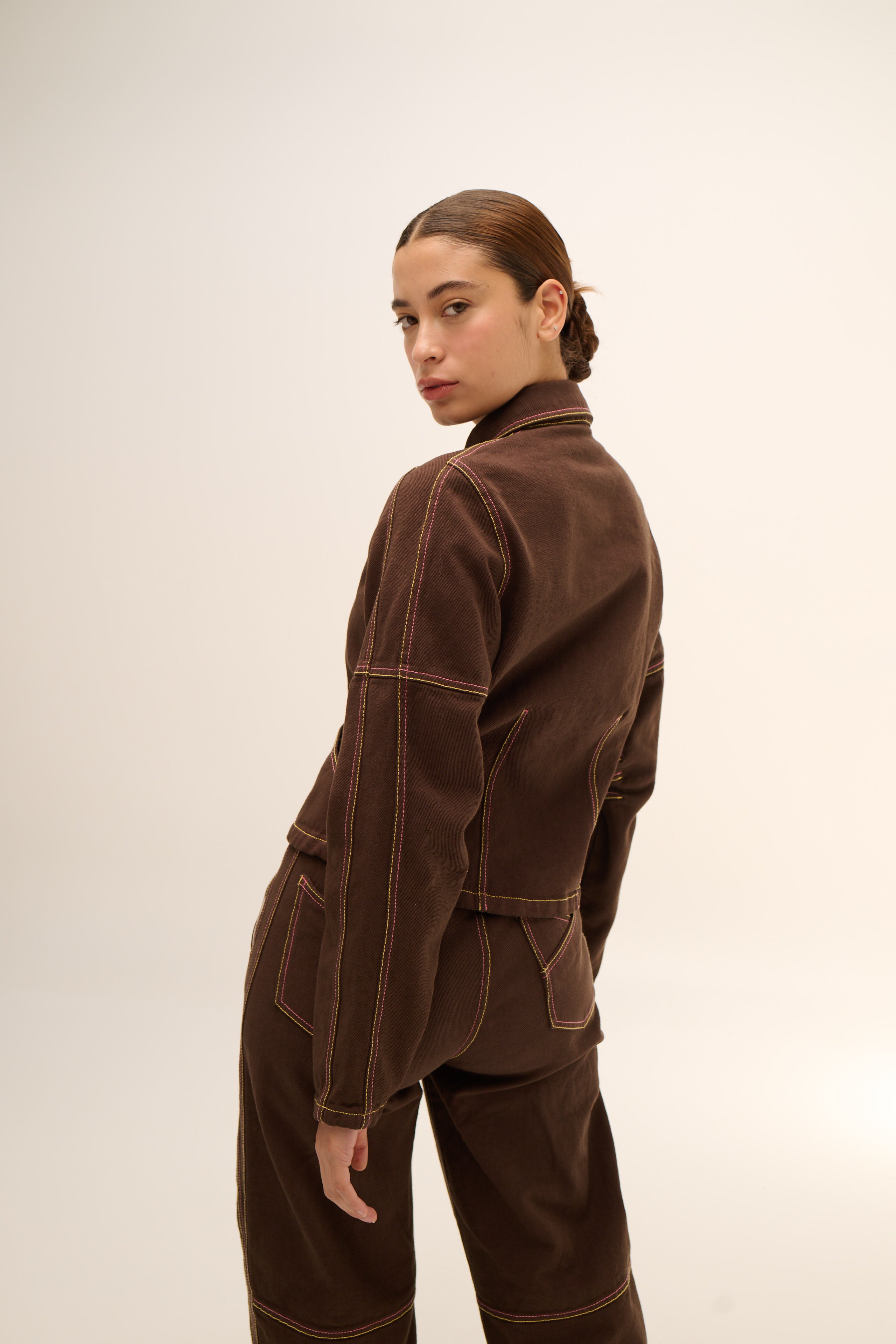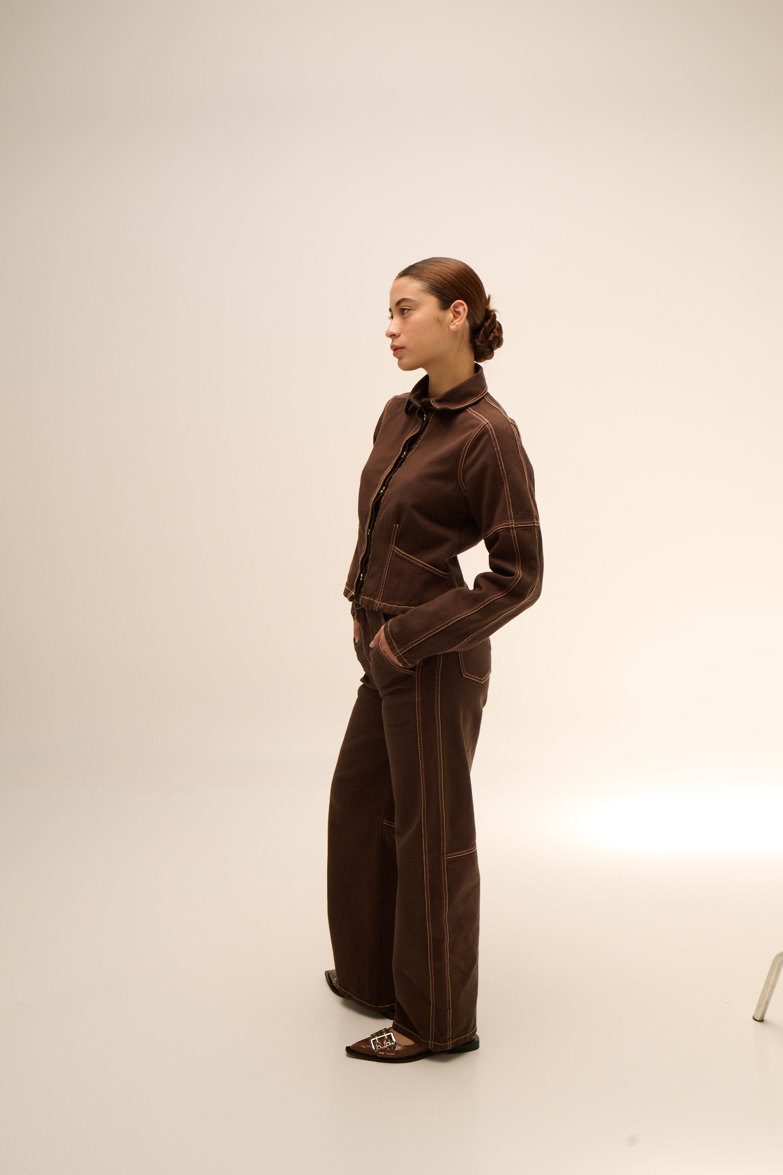 The Craftsman Jean is built with structure in mind. A barrel leg cut, bold paneling, and contrast stitching in blue and brown give it a grounded yet elevated edge. Finished with sculpted back pockets, it’s denim that feels as crafted as it looks.