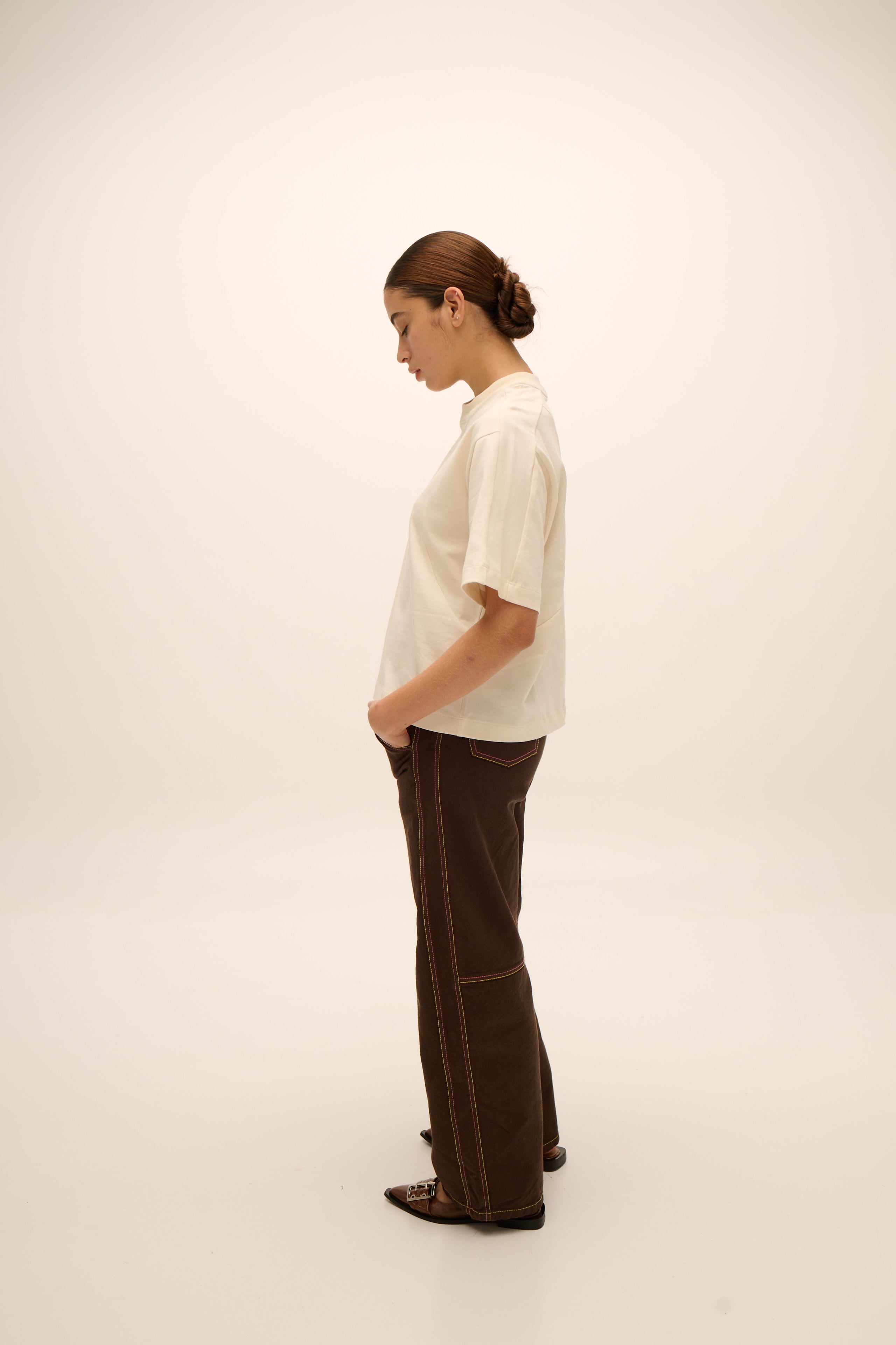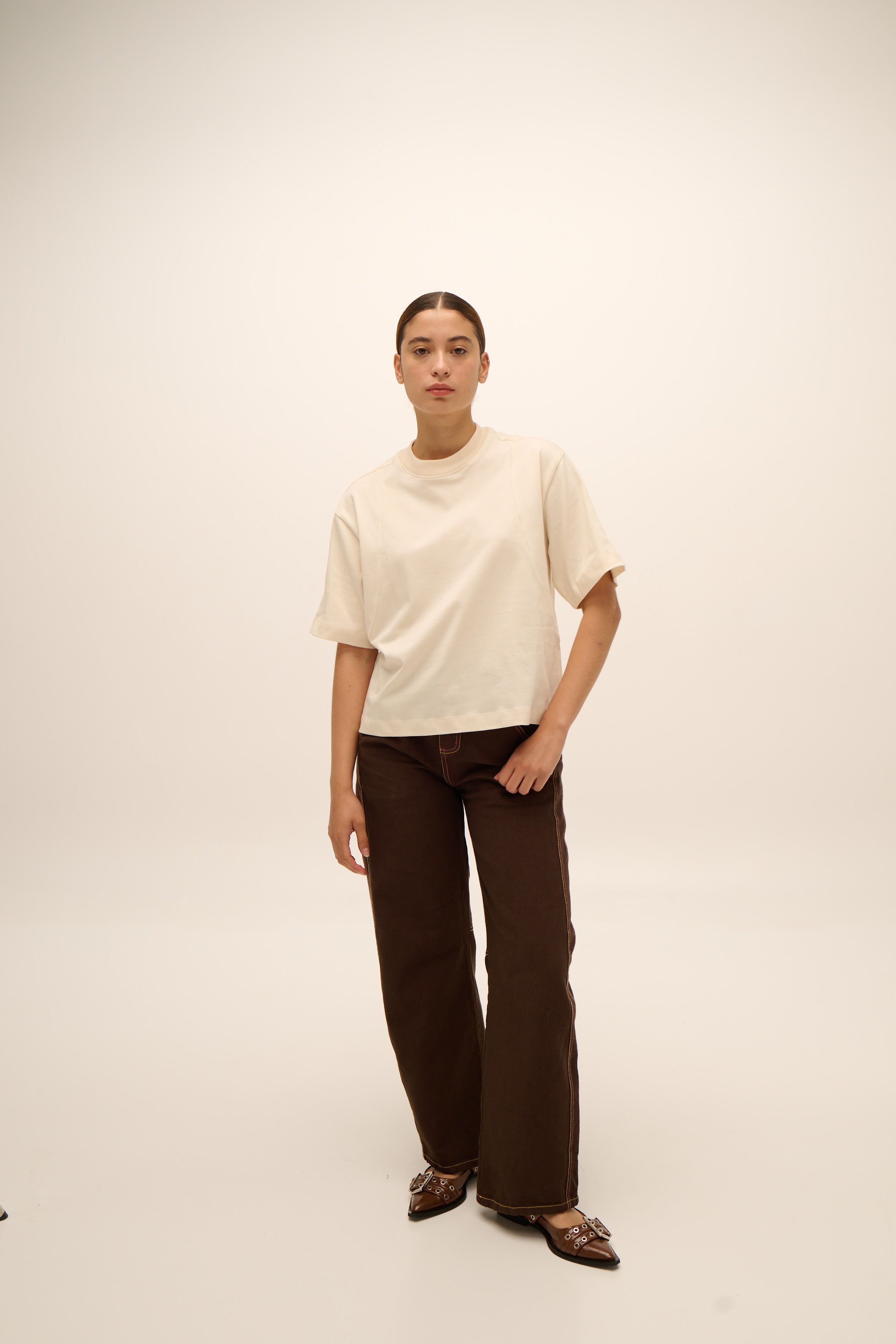 It’s the tee you wear when you want comfort with presence — easy, slightly undone, but put together in a way that feels instinctive. Pair it with denim for a laid-back uniform or dress it up with tailoring for contrast.